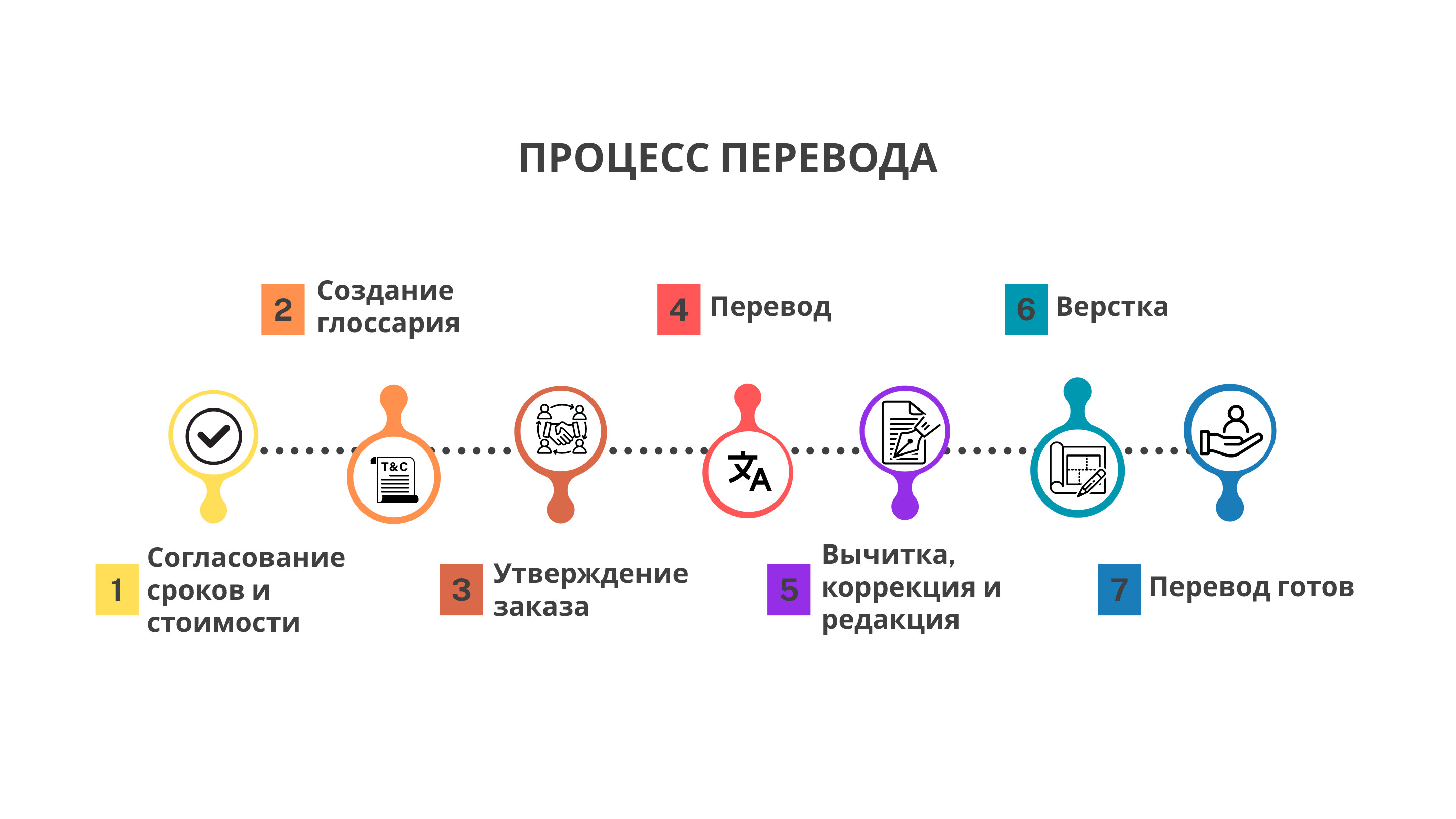 Качество перевода слагается из нескольких факторов. До принятия заказа на перевод с клиентом оговариваются наиболее удобоисполнимые сроки. Далее создается глоссарий (краткий словарь терминов, наиболее часто встречающихся в переводе) и предоставляется на утверждение заказчику. Создание глоссария обеспечивает соблюдение единой терминологии. По окончании перевода, весь тест подвергается дополнительной вычитке, коррекции и редакции (при необходимости).